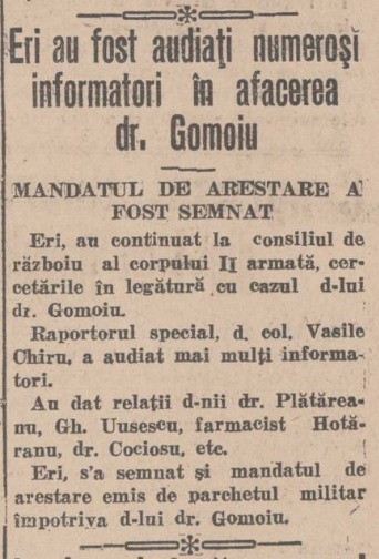 În anii ’30 medicul Vasile Gomoiu (astăzi avem un spital cu numele lui în București) a devenit unul dintre cei mai cunoscuți critici ai camarilei suveranului Carol al II-lea. În martie-aprilie 1934, a publicat un manifest împotriva regelui și a cercului său de apropiați și a fost arestat pentru o perioadă de o lună sub acuzația de lèse-majesté, fiind ulterior investigat pentru un presupus complot pentru asasinarea lui Carol. Sursa